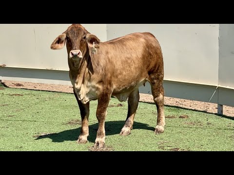 Pay attention right here! If you’ve been searching for that American dream girl to take your show calf offspring to the next level, this lady is the real deal!! She is loaded with that true, honest thickness that you just don’t find in her kind everyday. Her top shape alone is something special. She has phenomenal width and expression across her back that starts at the base of her neck and carries all the way back. Check out the massive bone structure under this female and she is sound moving as you could ask for. She has incredible width at her chest and is bold sprung in her upper rib cage, yet balances that package with femininity and extension from her shoulders forward. This heifer would be ideal to raise you some “Brahman” classifying steers. She is a champion maker and the next big thing!