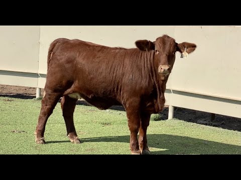 A dark red, baby doll that is loaded with thickness, bone and power. She will make that gentle, easy keeping momma that you can breed any way you like!