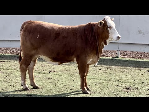 This nice handling Braford heifer may win first prize today in terms of easy fleshing!! She is an extremely deep sided, soggy made female that is bold in her rib shape and stout from behind. She will make a big cow that is capable of weaning those 700+ pound yearlings!