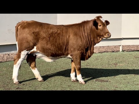 Here’s an extremely nice paint Beefmaster female! Just look at the circumference of bone under this heifer that she follows with tremendous volume of muscle. She is a deep-bodied, deep-flanked heifer that is very gentle!