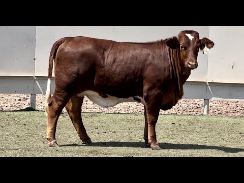 This gorgeous dark cherry red lady represents the Beefmaster breed to a T! She has that signature depth of body, massive bone, and excellent muscling combined with that chromed-out underline! She will make that easy fleshing cow that will milk her way to the top of any herd!