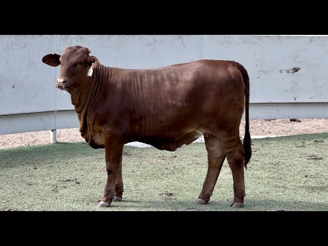 A dark red, easy-handling Beefmaster female! We love the bone structure and the volume found in this nice lady!