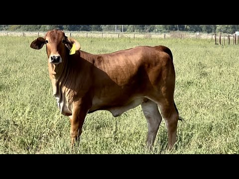 Check out this stunning red lady in Lot #10! She will make a long-bodied, large-framed momma cow that will raise you up a calf no matter the hand she’s dealt. This is an extremely clean, feminine-made Red Brahman that will be a production machine!