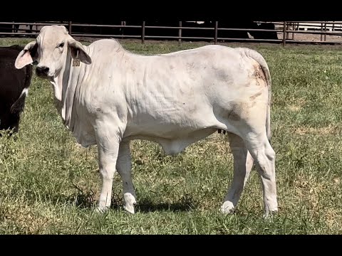We love the structure and build of this outstanding Brahman female! She has a thick, meaty top line and matches that thickness through her hindquarter. This heifer is level from hooks to pins and just has that overall eye appeal and balance to make the full cow-making package!
