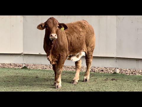 A power packed Beefmaster female in Lot #12! Her monster bone and extreme muscling make her a stand out amongst her kind. She handles great and will make an easy fleshing momma that raises giant babies.