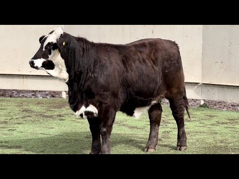 A massive boned, extremely thick, soggy made lady right here! She is chocolate striped with that eye catching motley face! This heifer is heavy on the Beefmaster influence and will have excellent milking potential combined with her easy going temperament.