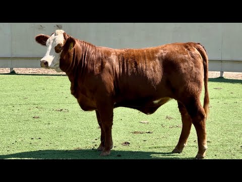 We love the overall balance and eye appeal this ring eyed red exhibits! She is a thick, square made female that will raise highly marketable offspring. She is gentle and confirmed bred 4 months!