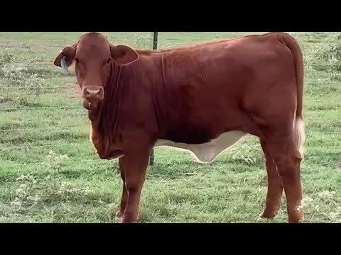 Check out this sweet little red lady Rocky Ridge Beefmasters has selected to consign! This heifer would make the perfect halter heifer project! She has that show ring style and presence combined with an exceptional phenotype. Just look at the depth of body and depth of flank in this female at her age. She is big boned and extremely level made and square out of her hip. That flashy chromed underline is hard to get around too!! The registration transfer of this heifer is guaranteed. The registration papers pictured with this lot are of her sire and dam. This heifer is 30+ days weaned and currently located in Madisonville, TX and arrangements can be made to pickup in Madisonville or at J&J.