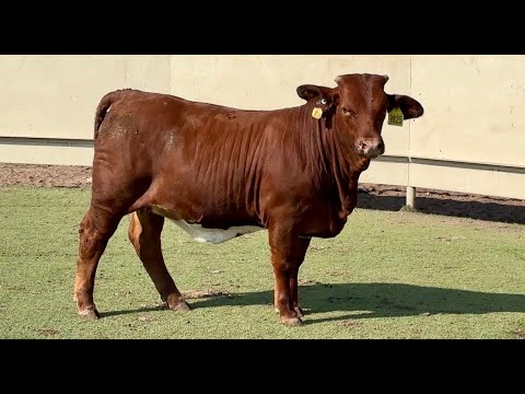 A thick, square made Beefmaster female in Lot 3! She is a big pet!! We love the dimension she shows through her center body and her incredible bone structure!