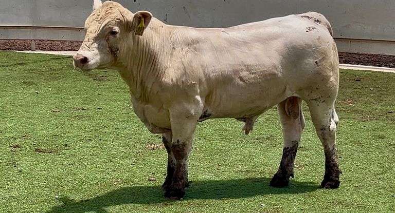 This 20-month-old Charolais bull has been fully tested and is ready to go.